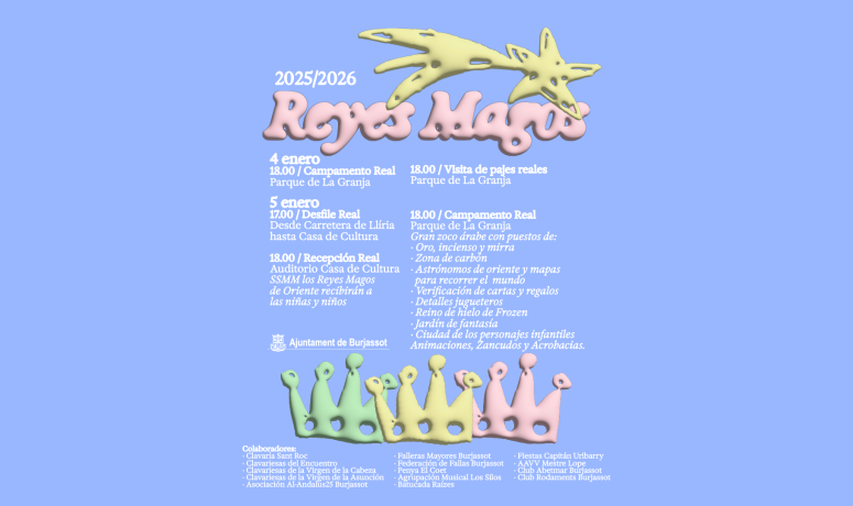La llegada de los Reyes Magos es el momento más esperados del año para los más pequeños, que viven estos días previos al 5 de enero con una ilusión creciente. En Burjassot, esa espera se traduce en un completo programa de actividades pensado para que el público infantil pueda encontrarse con Sus Majestades y compartir con ellos sus deseos.