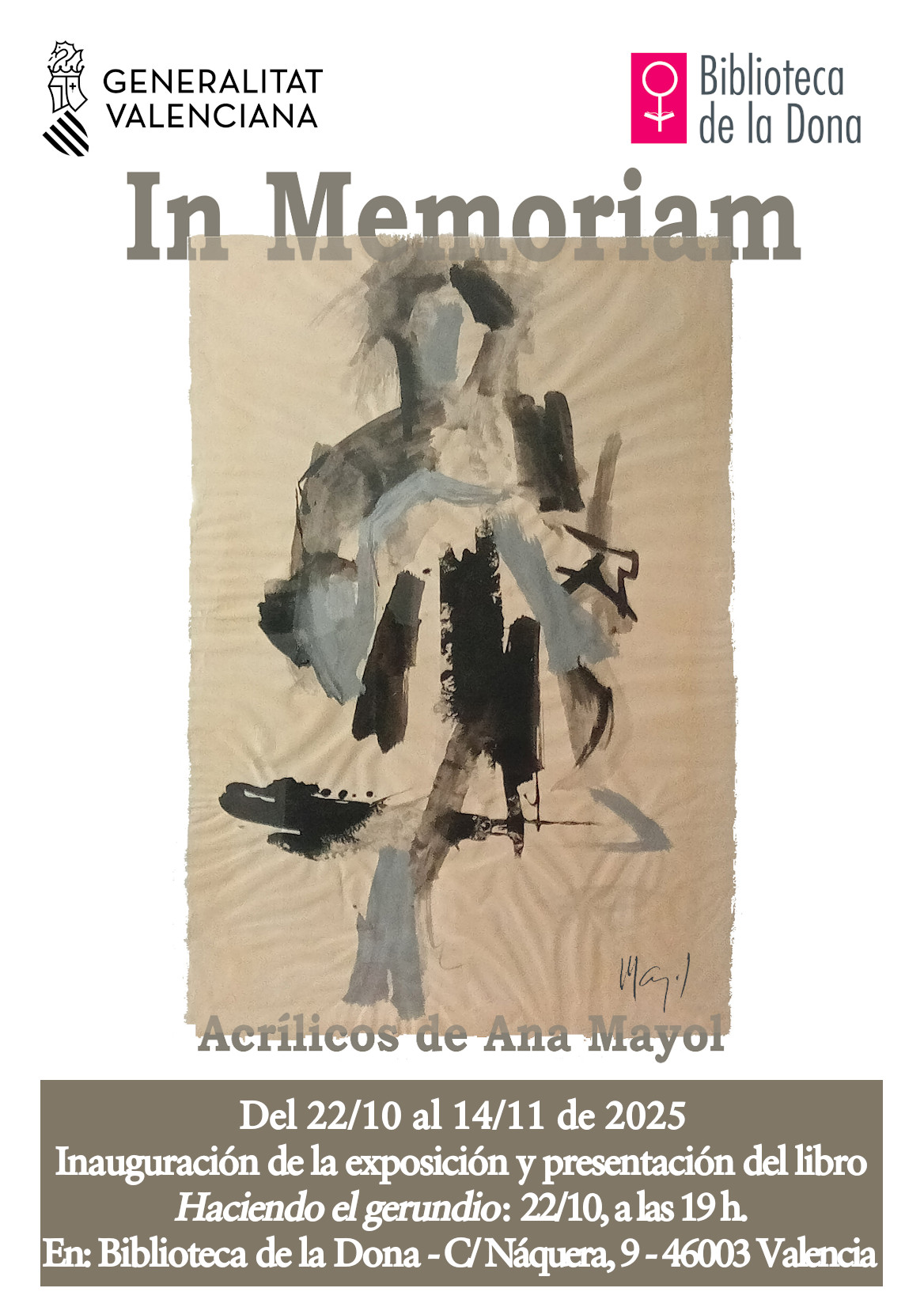 La genial artista burjassotense Ana Mayol va a exponer parte de su creación artística de acrílicos, desde este miércoles 22 de octubre y hasta el viernes 14 de noviembre, en la Biblioteca de la Dona, ubicada en la c/ Náquera, 9, en Valencia.