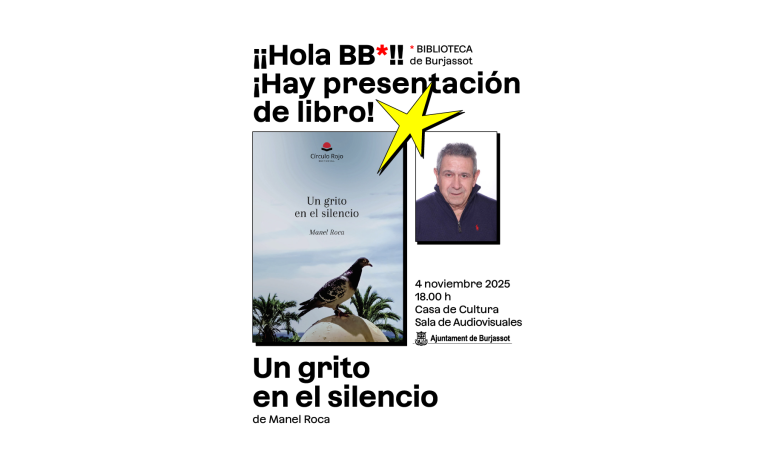 El próximo martes 4 de noviembre, de manos del equipo de las Bibliotecas Municipales, y dentro de la campaña de fomento de la lectura, la Casa de Cultura de Burjassot va a acoger una nueva presentación literaria. En esta ocasión, la del poemario de un vecino del municipio Manel Roca, Un grito en el silencio.