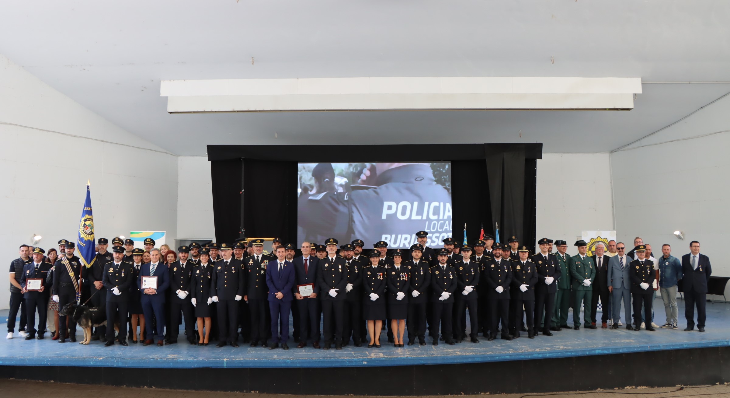 L’Auditori de la Casa de Cultura s’ha vestit de gala per a reconéixer a més de 90 agents, comandaments i personal civil no sols el seu treball per Burjassot sinó, també, la col·laboració amb les Policia Local de Burjassot, clau en el desenvolupament de les seues accions i fonamental per al bon desenvolupament dels servicis que duu a terme. Guàrdia Civil, Policia Nacional, membres de la judicatura…totes i tots han volgut ser presents en l’acte i han rebut també reconeixements.