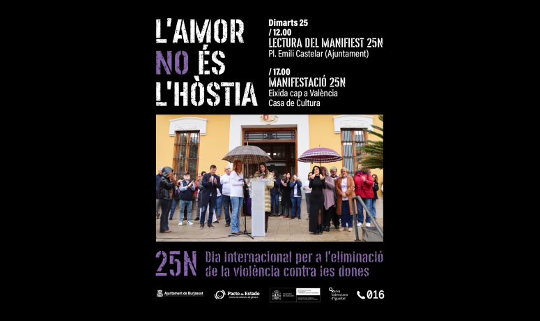 Per tot això, des de l’Ajuntament de Burjassot, “reafirmem, una vegada més, el nostre compromís ferm amb la igualtat d’oportunitats entre dones i hòmens i l’erradicació de totes les formes de violència masclista reconegudes en la nostra legislació autonòmica: física, psicològica, sexual i econòmica”.