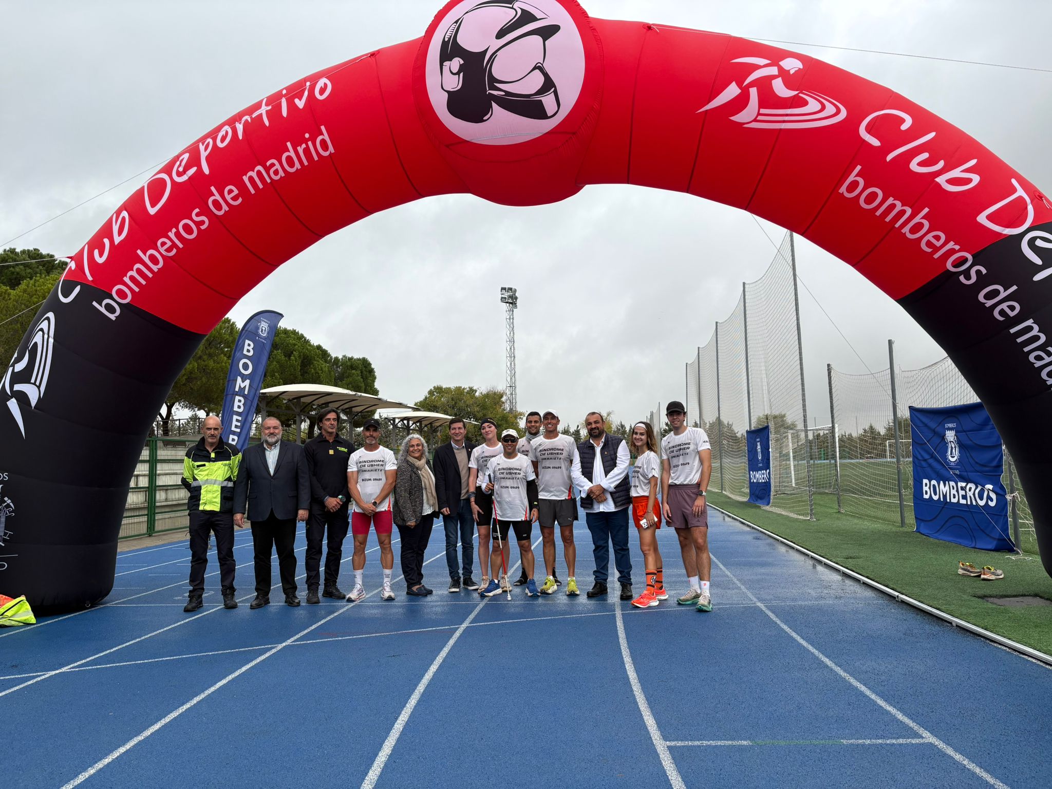 Mario ha estat acompanyat i escortat, en la seua arribada a la capital, per una representació de bombers vestits amb la roba esportiva del Club Esportiu de Bombers de Madrid, ja que un dels seus components ha sigut la seua guia i company en estos set dies del repte solidari “Corrent per la visió”.
