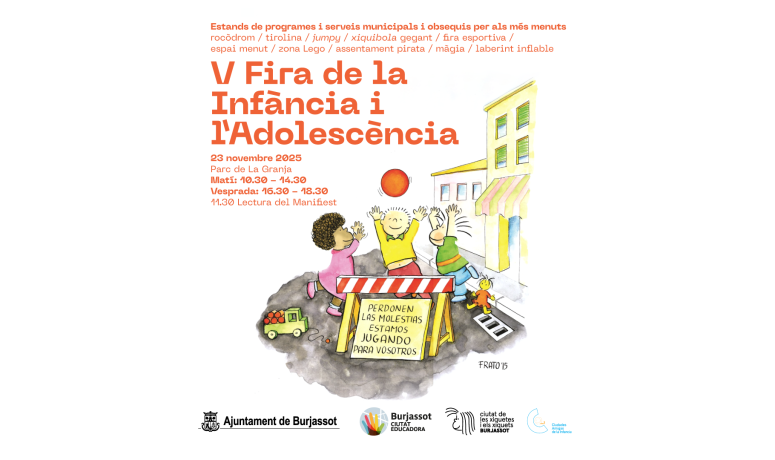 Serà el diumenge 23 de novembre, a partir de les 10.30 hores, quan el Parc de La Granja òbriga les seues portes a la V Fira de la Infància i l’Adolescència, organitzada per la Regidoria de Protecció i Drets de la Infància de l’Ajuntament de Burjassot, dirigida per Yolanda Andrés. Un diumenge reivindicatiu que arriba després de la celebració, el dijous 20 de novembre, del Dia Mundial de la Infància en el qual també es commemoren els aniversaris de l’adopció de la Declaració Universal dels Drets del Xiquet (1959) i l’aprovació de la Convenció dels Drets del Xiquet (1989).