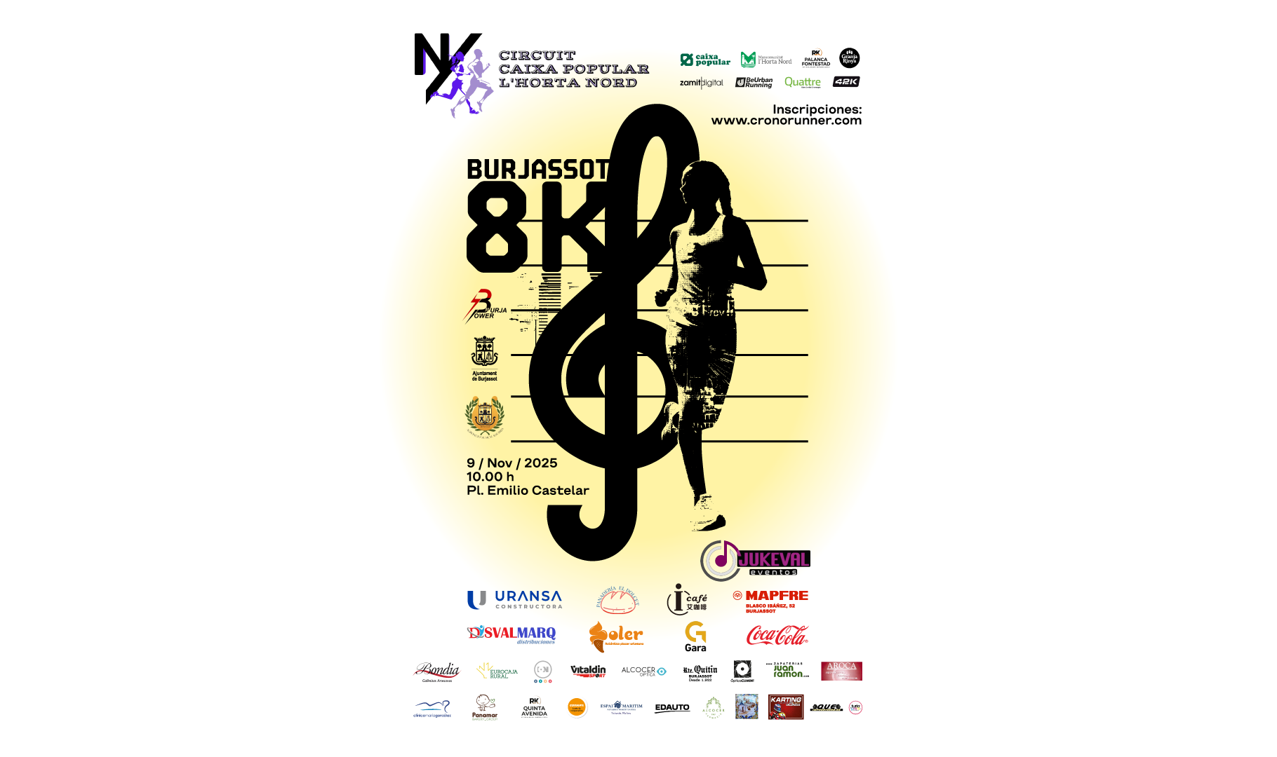 Ilusionados, con ganas de que la ciudadanía de Burjassot se vuelque en la primera 8K del municipio organizada por el club, el Grupo de Recreación Deportiva Burjapower ha presentado esta mañana el cartel oficial de su carrera que tendrá lugar el próximo 9 de noviembre a partir de las 10.00 horas y que se enmarca dentro de Circuit Horta Nord.