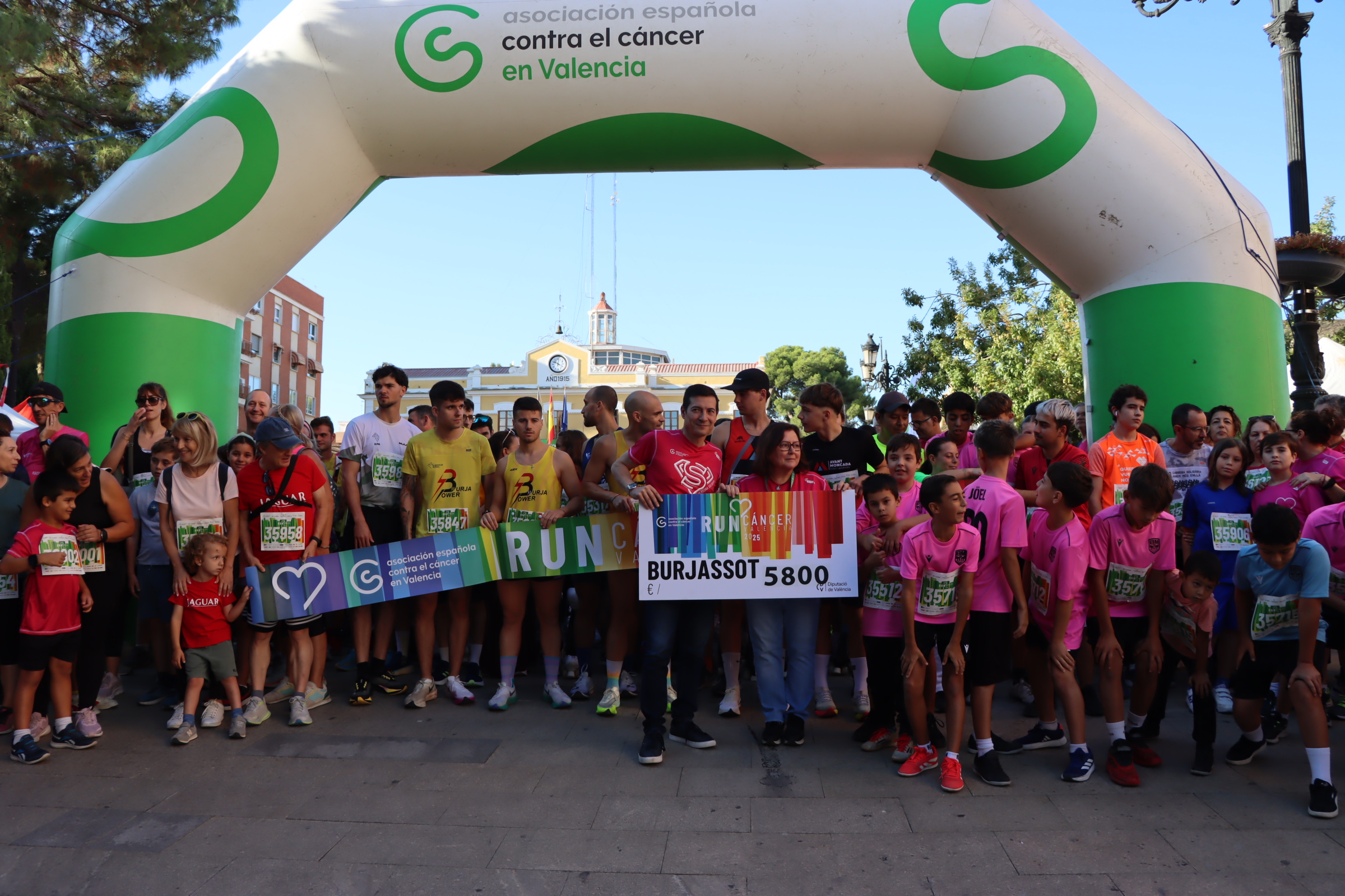 No cabía una aguja en la Plaza Emilio Castelar (Ayuntamiento) de Burjassot este domingo a las 10.00 horas. Momentos antes de dar la salida de la marcha solidaria de 4 km para la lucha contra el cáncer, dentro del Circuito RunCáncer 2025, centenares de vecinas y vecinos con sus familias, sus mascotas, con patines y con una gran sonrisa, estaban ya preparados para inundar las calles del municipio con su súper solidaridad.