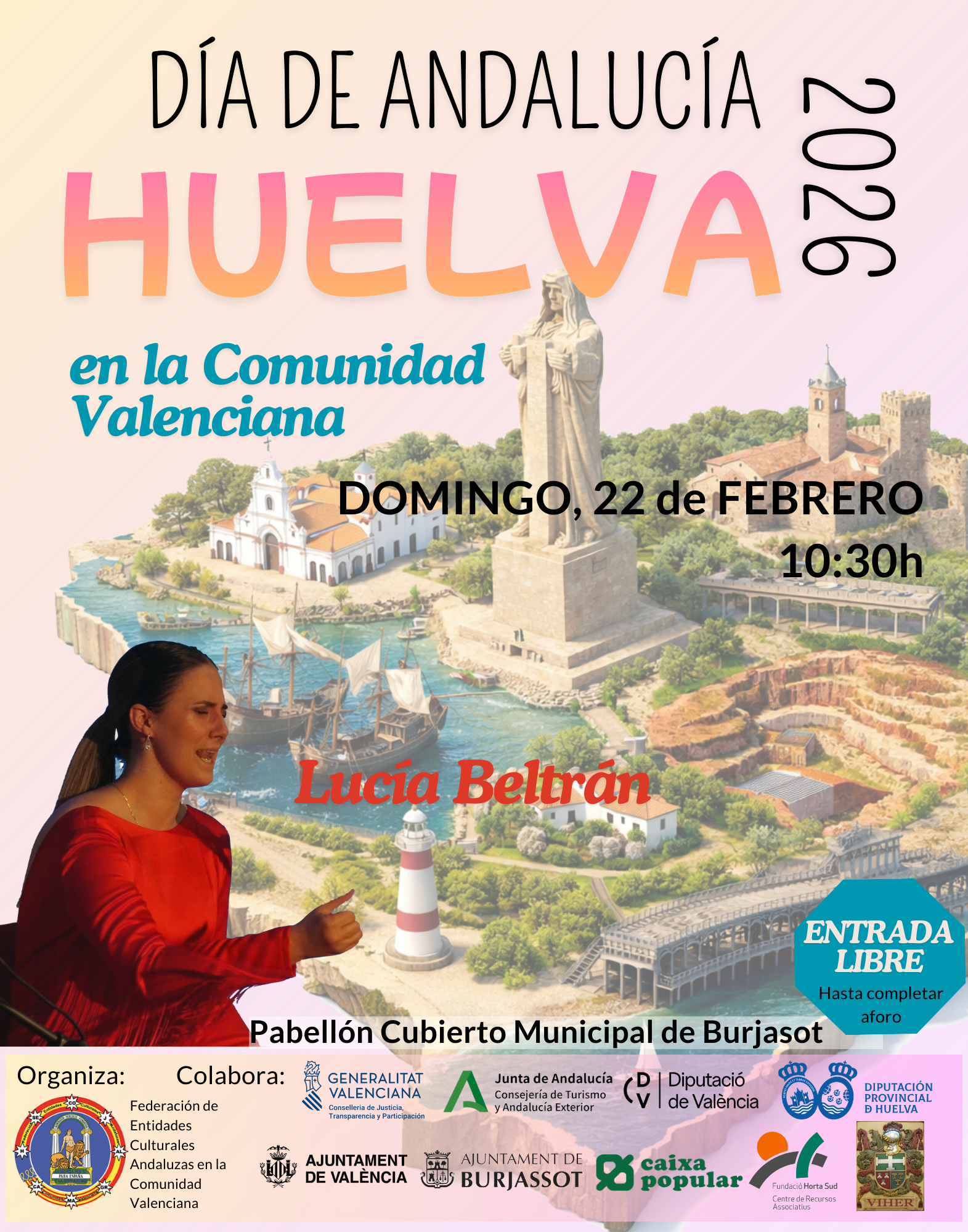 El Pabellón Cubierto de Burjassot va a ser la sede de la celebración del Día de Andalucía en la Comunidad Valenciana el próximo domingo 22 de febrero, a partir de las 10.30 horas y con entrada gratuita hasta completar aforo. Una edición que rinde homenaje a la provincia de Huelva.