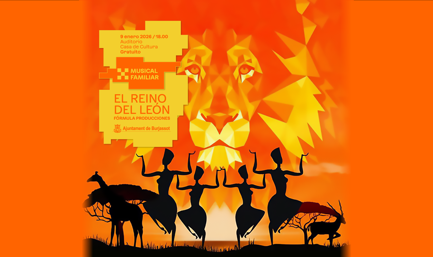El viernes 9 de enero de 2026, a las 18.00 horas, el Auditorio de la Casa de Cultura de Burjassot acogerá El Reino del León, un musical familiar gratuito a cargo de Fórmula Producciones. La entrada será libre hasta completar aforo.