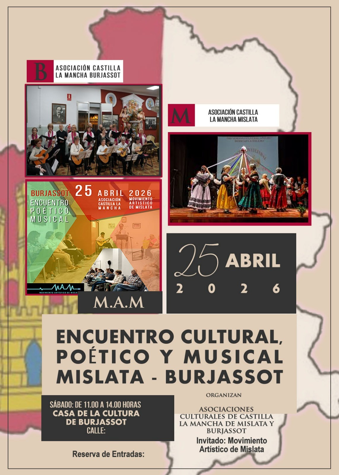 Nueva fecha marcada en el calendario para el Centro Cultural Ínsula Barataria- Castilla La Mancha de Burjassot. El próximo sábado 25 de abril la entidad burjassotense va a celebrar, en la Casa de Cultura del municipio, un encuentro cultural, poético y musical junto a la Asociación Cultural de Castilla- La Mancha de Mislata.