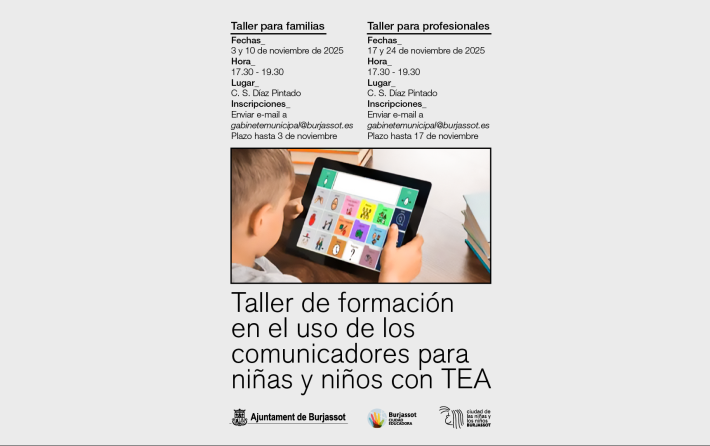 Familias y profesionales de Burjassot recibirán formación gratuita en el uso de comunicadores para niñas y niños con TEA