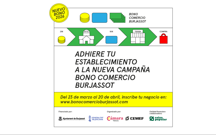 Los comercios y servicios de Burjassot ya pueden adherirse a la campaña del Bono Comercio 2026