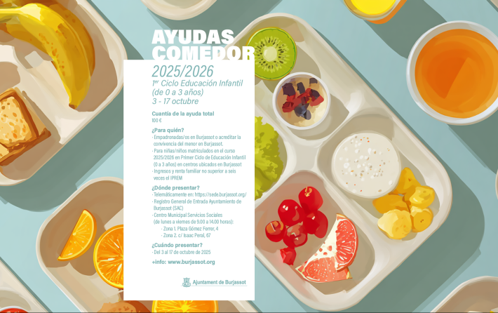 Burjassot ayudará a las familias con niñas y niños de 0 a 3 años con 100€ para sufragar gastos de comedor