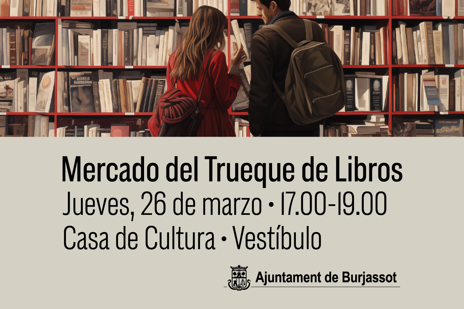 El mes de marzo llega a su fin y, como es habitual, el intercambio de libros va a ser el protagonista en las actividades de fomento de la lectura de las Bibliotecas Municipales de Burjassot. Como cada último jueves de mes, en este caso el día 26, llega una nueva oportunidad para intercambiar libros en la Casa de Cultura.