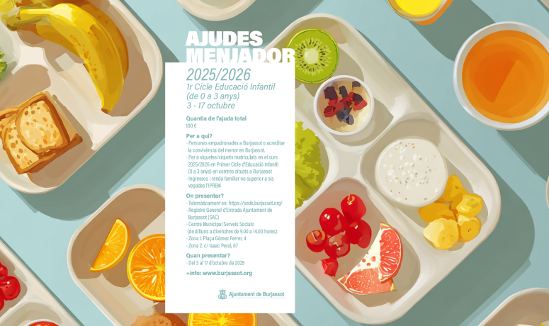 El Consistori donarà una ajuda de 100€ a les famílies amb xiquetes o xiquets escolaritzats en Educació Infantil, de 0 a 3 anys, en els centres Burjassot destinada a sufragar part dels gastos de menjador.