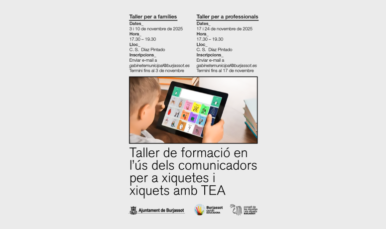 El programa formatiu constarà de dos tallers diferenciats. El primer, dirigit a les famílies de Burjassot de menors amb TEA, se celebrarà els dies 3 i 10 de novembre de 2025, en horari de 17.30 a 19.30 hores, en el Centre Socioeducatiu Díaz Pintado. El segon, orientat a professionals dels centres educatius de Burjassot, tindrà lloc els dies 17 i 24 de novembre, també de 17.30 a 19.30 hores, en el mateix espai municipal.