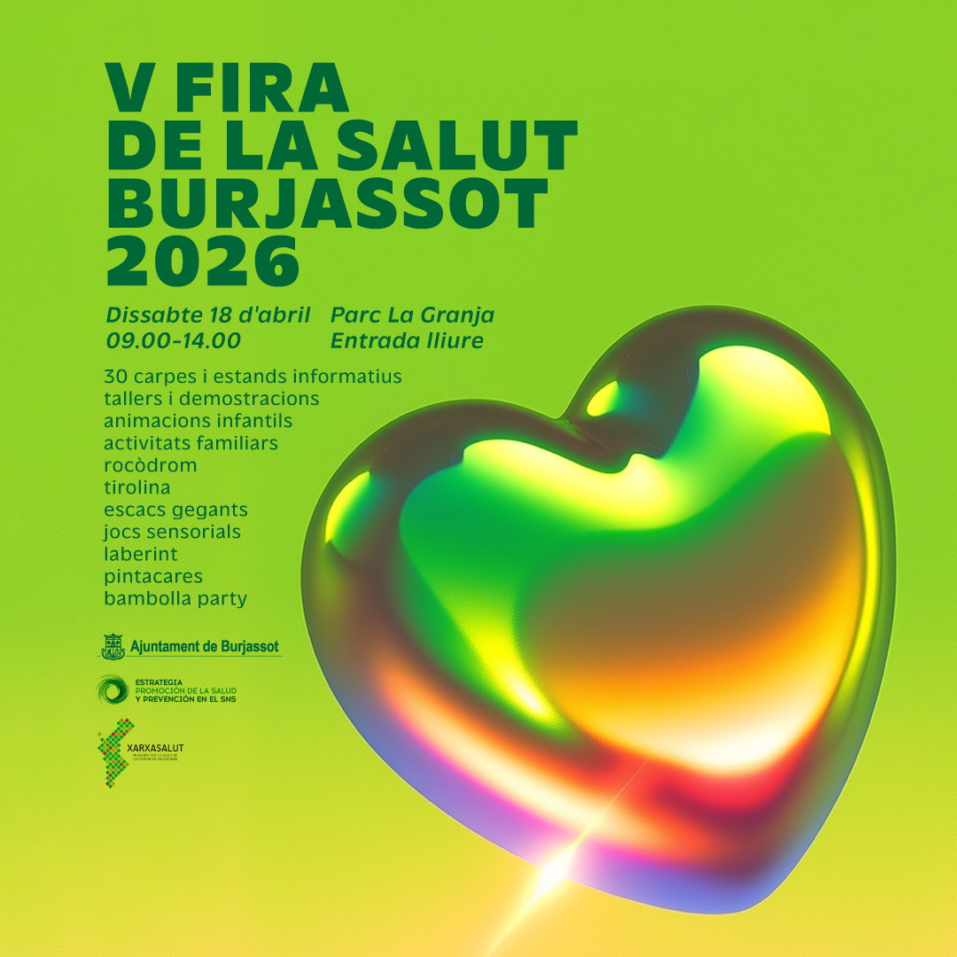 Ja està tot preparat, des de la Regidoria de Sanitat de l’Ajuntament de Burjassot, dirigida per Isabel Mª Mora, perquè dissabte que ve 18 d’abril el Parc de La Granja aculla la quinta edició de la Fira de la Salut, un esdeveniment consolidat en el calendari burjassoter i que, un any més, comptarà amb diferents estands i activitats enfocades al món de la salut.