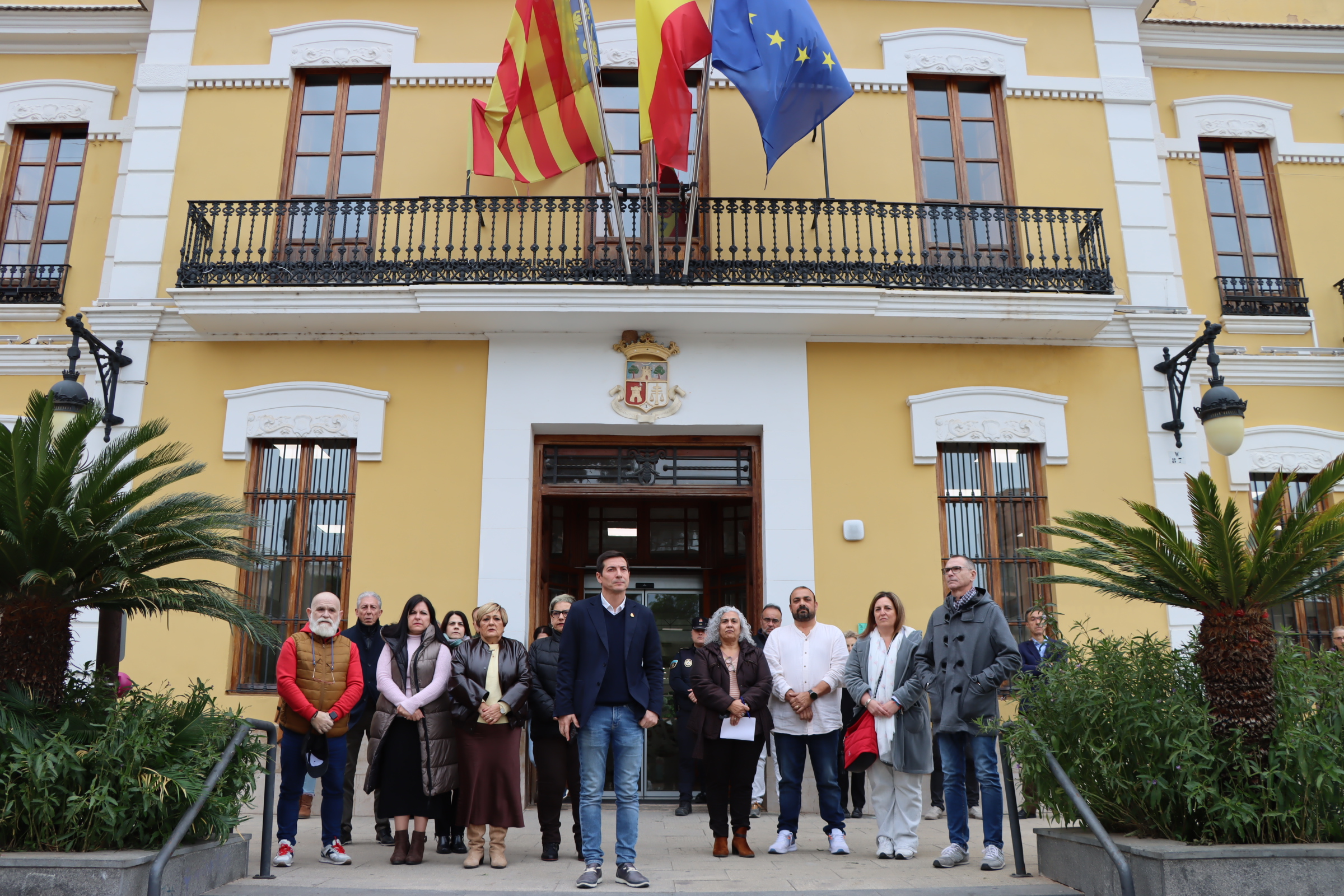Membres de la Corporació Municipal, encapçalats per l’alcalde, Rafa García, així com personal de la plantilla i veïns i veïnes s’han concentrat a les portes del Consistori per a guardar silenci com a mostra de condemna i de solidaritat envers els familiars de la víctima.